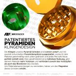 1x Pyramid Grinder, 1x Pollenschaber, 1x Reinigungsbürste, 1x Schutztasche